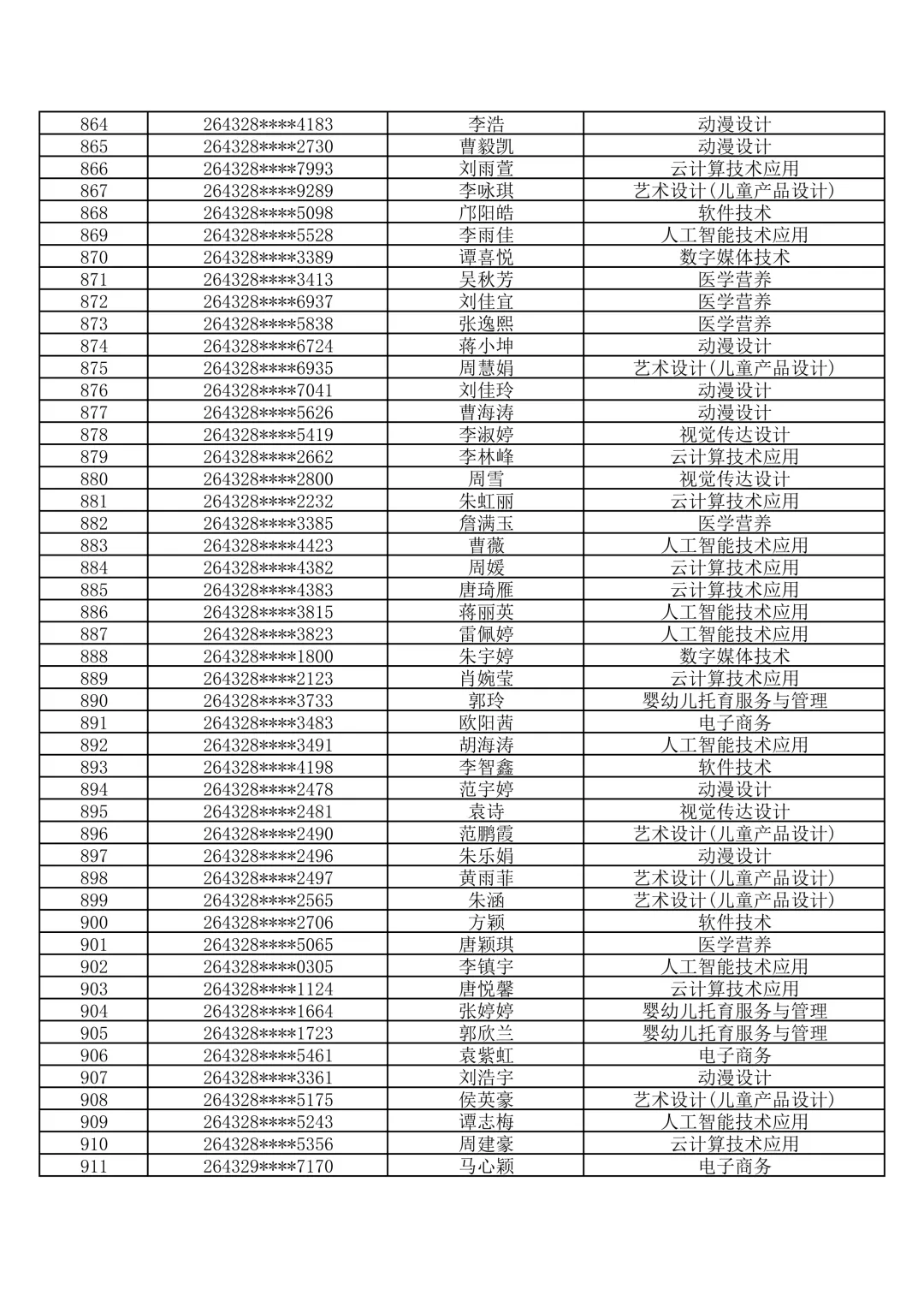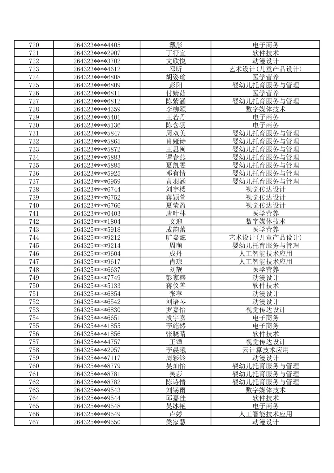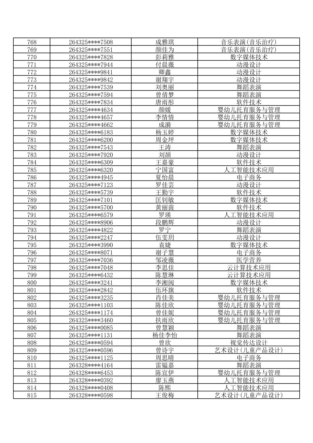 根据《长沙幼儿师范高等专科学校2026年高职单招章程》的相关规定,现将我校2026年单招第一志愿拟录取名单及录取分数线予以公布。最终录取名单以湖南省教育考试院4月7日17:00后在"潇湘高考"APP公布的为准。
