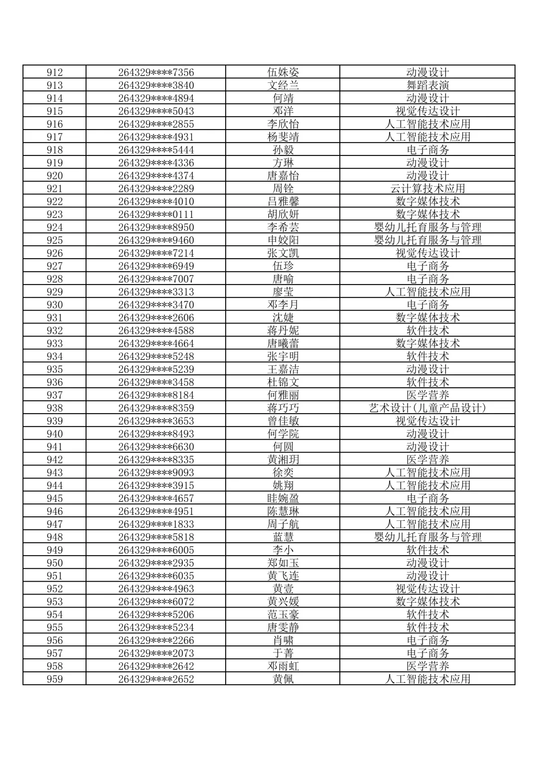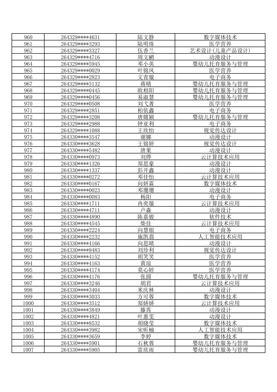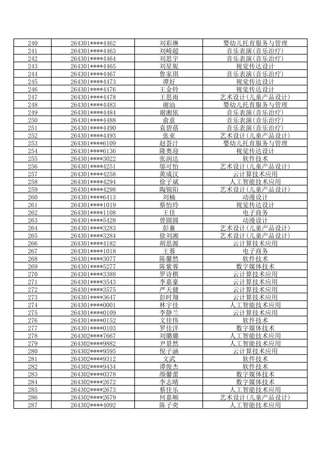 根据《长沙幼儿师范高等专科学校2026年高职单招章程》的相关规定,现将我校2026年单招第一志愿拟录取名单及录取分数线予以公布。最终录取名单以湖南省教育考试院4月7日17:00后在"潇湘高考"APP公布的为准。
