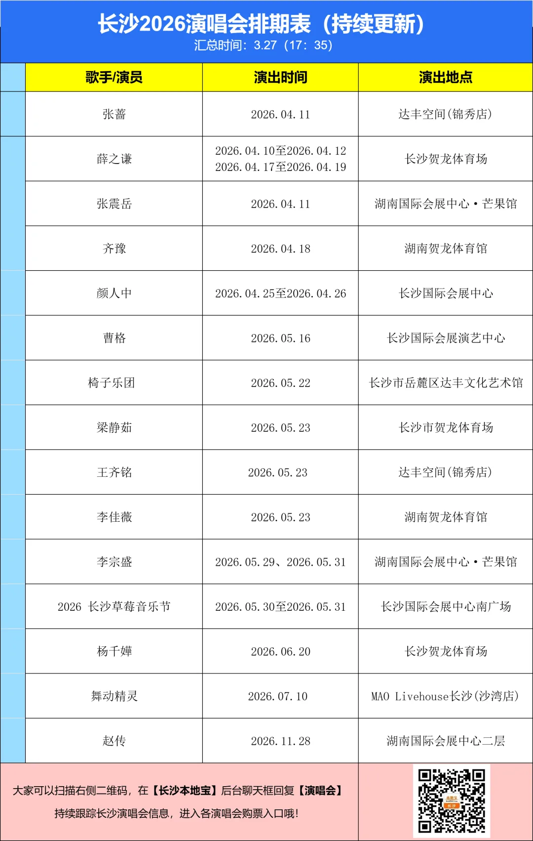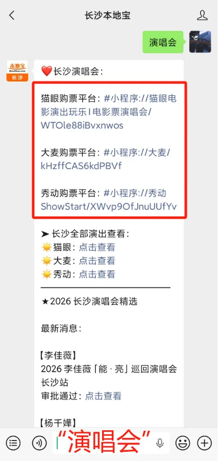 回复:演唱会,获取长沙近期演唱会汇总信息