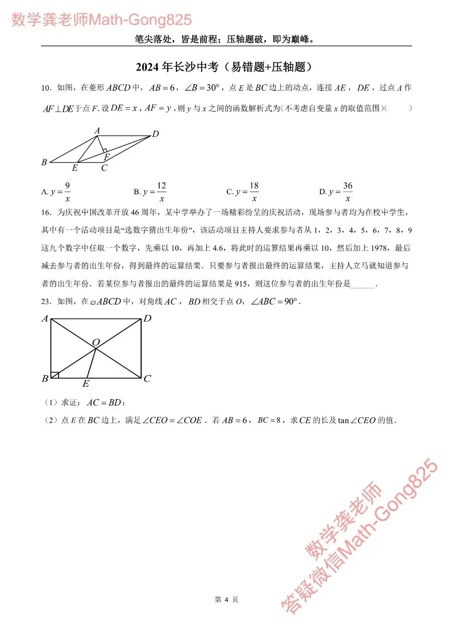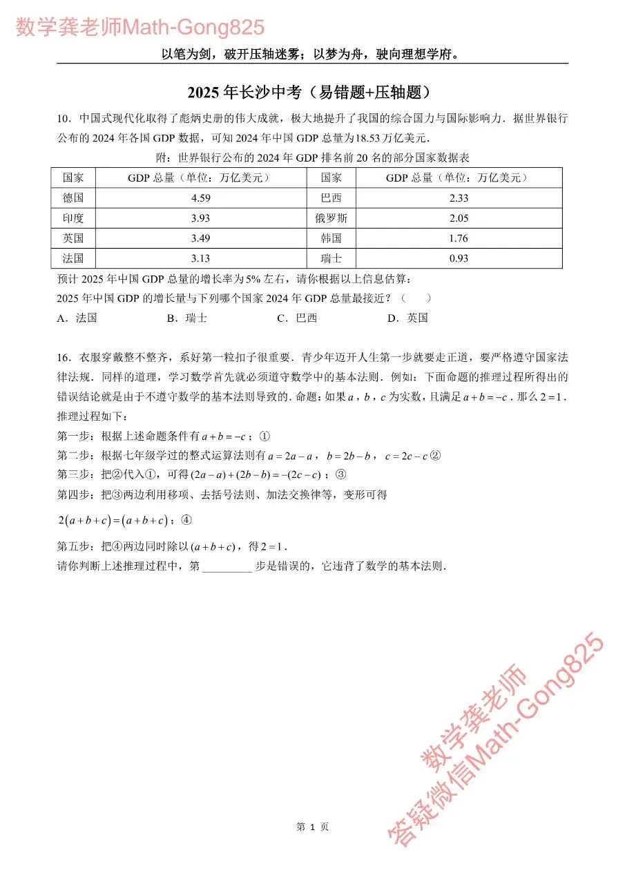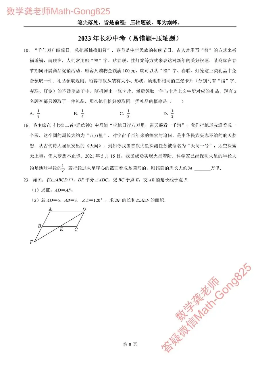>长沙初三尖子生必刷:2019-2025年长沙中考易错题+压轴题