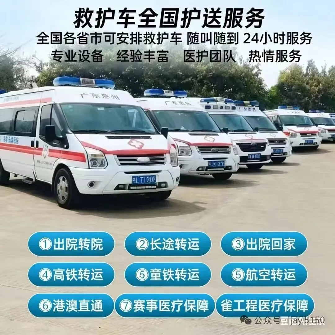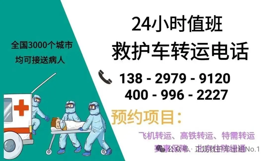 我们是救护车出租转运公司,120救护车接送病人预约护送。24小时为术后康复、危重患者及跨区域就医人群提供专业医疗转运服务,提供120救护车出租‖救护车转运‖私人120救护车(非急救)‖跨省长途转运‖危重病人转运‖市内转运‖术后康复病人转运‖高铁病人转运‖患者返乡‖大型活动赛事保障‖配备ICU设备:呼吸机▪心电监护仪▪吸痰器•微量泵•氧气▪急救药箱▪专业医护团队