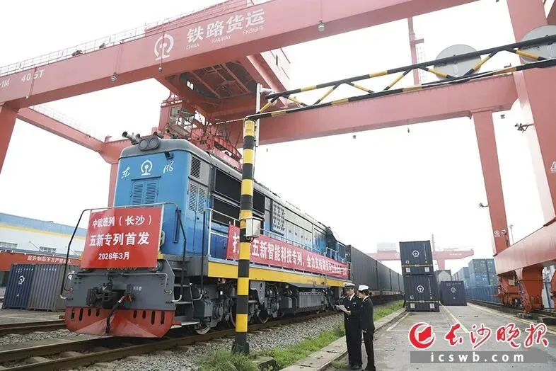 3月28日,经长沙海关所属星沙海关监管放行,一列满载湖南本土企业自主研发高端装备的中欧班列(长沙)——“五新专列”,从长沙国际铁路港启程驶向欧洲。紧随其后,第二列同主题专列将于3月31日接续发运,持续为湖南制造“出海”搭建稳定、高效、直通的国际物流通道。