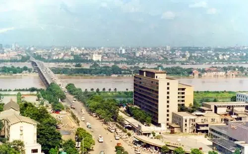 这张照片里最抢眼的就是湘江大桥,两岸楼房还不多,大桥就这么搁在江面上,家里老人提起当年通车,说全长沙都轰动了,桥面宽、车不多,骑辆二八自行车顺着桥吹江风,那味道现在花钱都买不到,桥两头的绿树密密地护着路,小时候过桥得提前喊家里人,说不定遇上哪个亲戚远远点头。