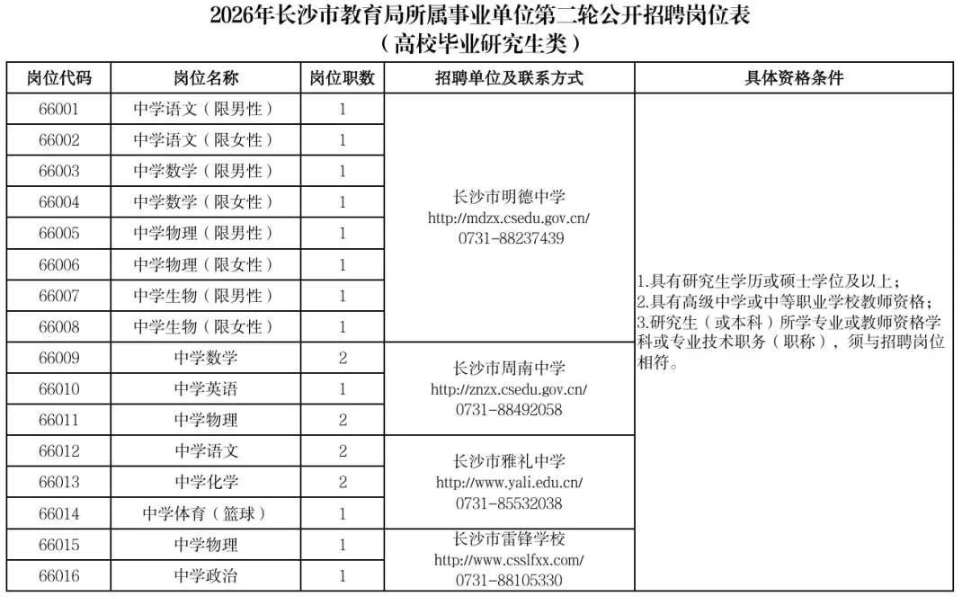 2026年长沙市教育局所属事业单位第二轮公开招聘教职工公告