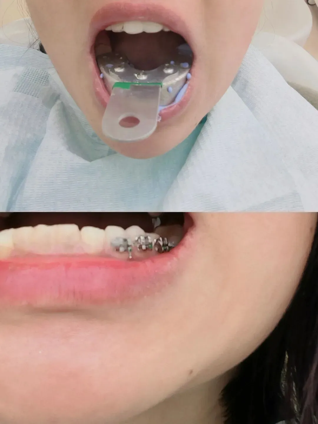 😣 下2号牙: 5年前补的材料早就掉了,赶上怀孕不敢治,哺乳期又不能操作,硬生生拖到牙体只剩半截。这次终于彻底做了根管,算是把“定时炸弹”拆除了。(图下牙根管了,今天来搞牙冠,牙磨小,然后取模再佩戴临时冠)