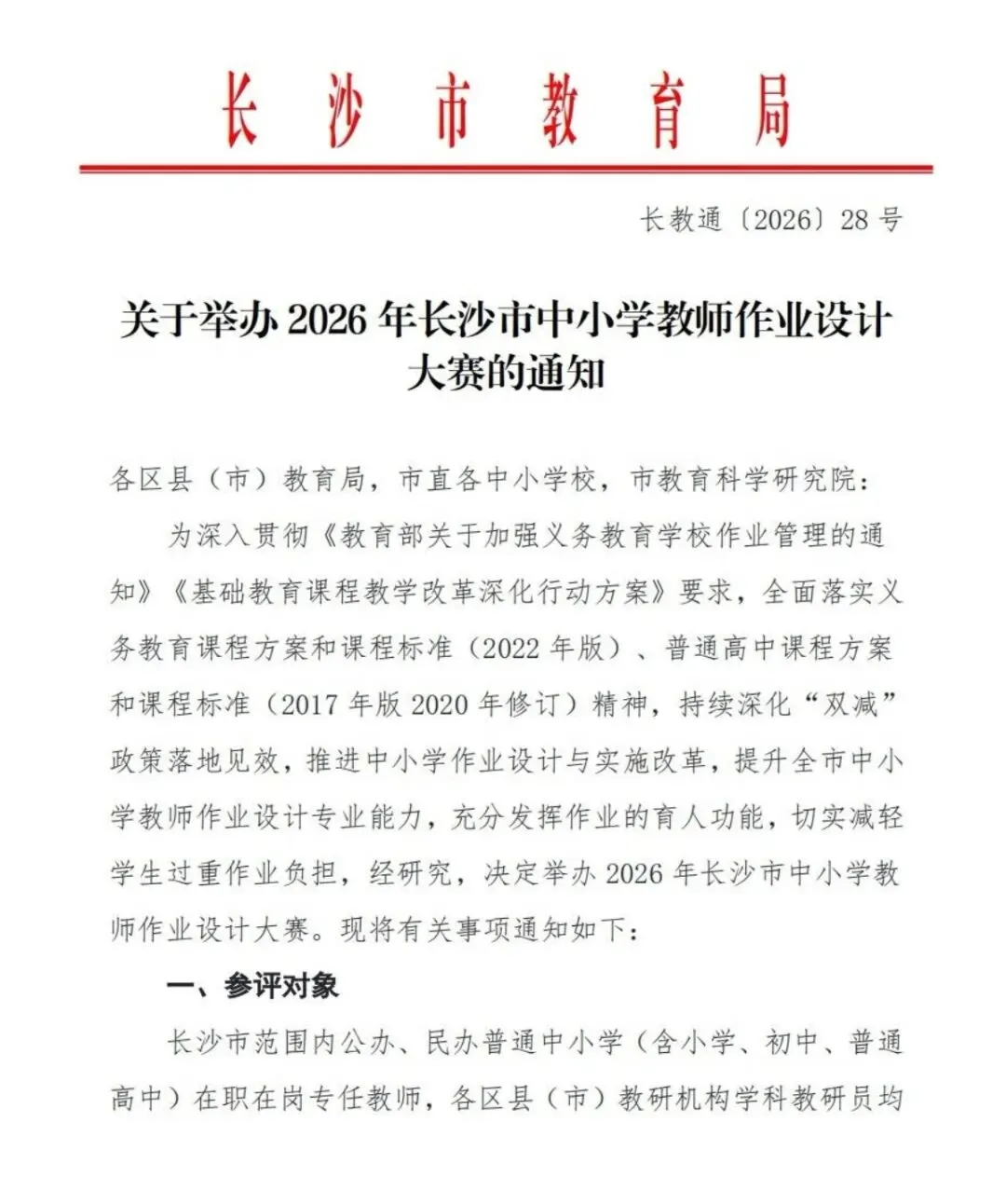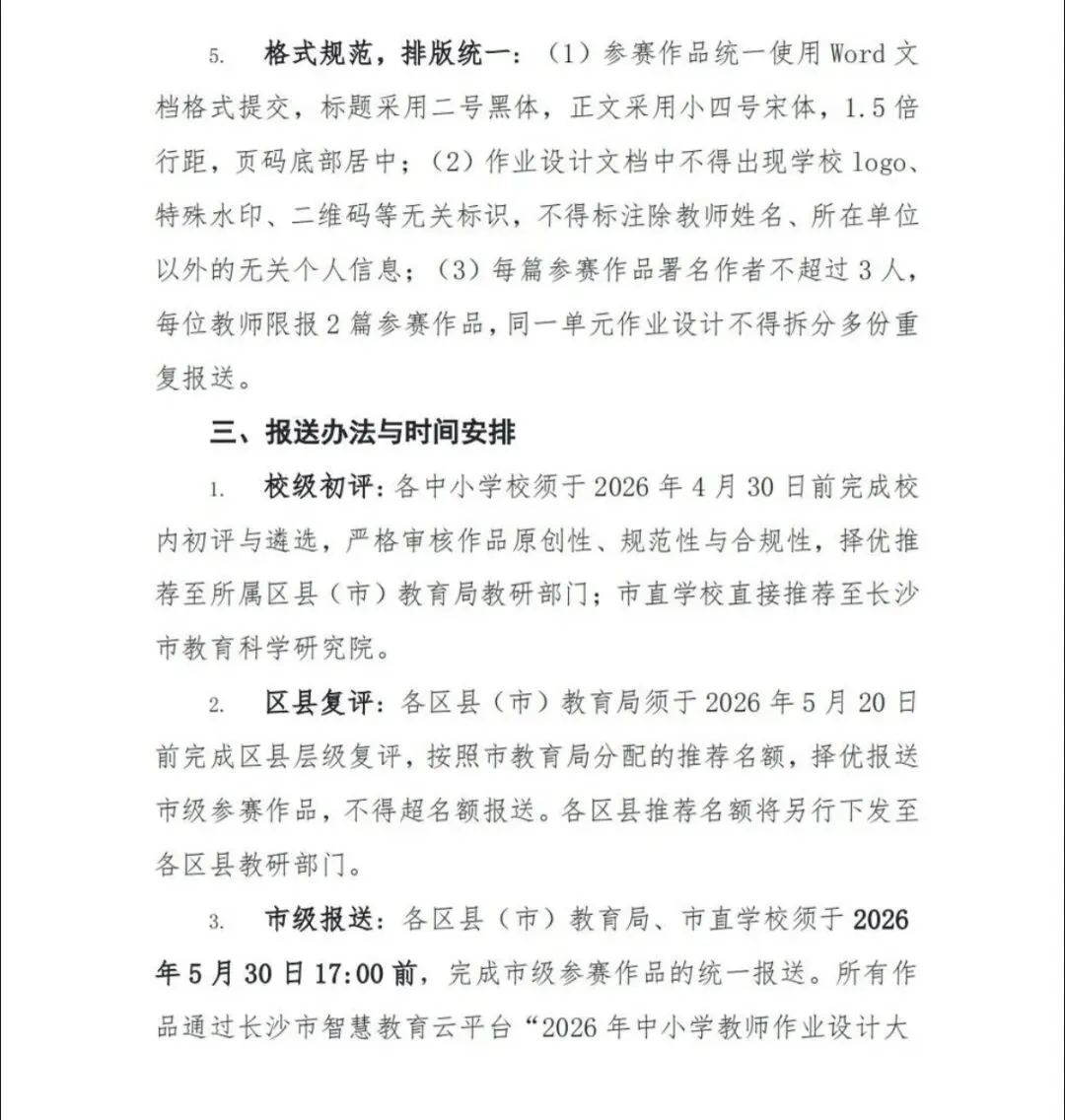 >【作业设计】2026年长沙市中小学教师作业设计大赛