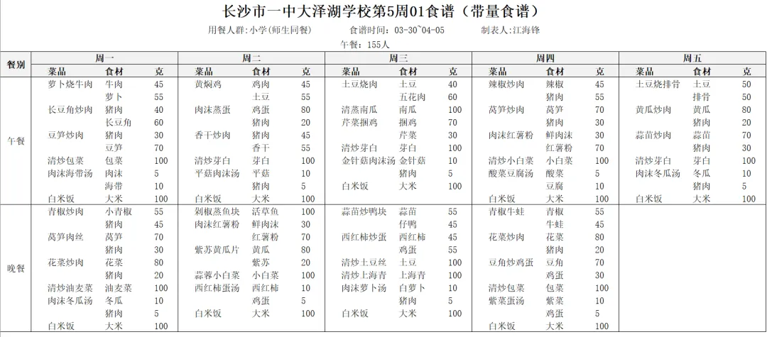 健康成长,“食”刻相伴|长沙市一中大泽湖学校第五周营养食谱