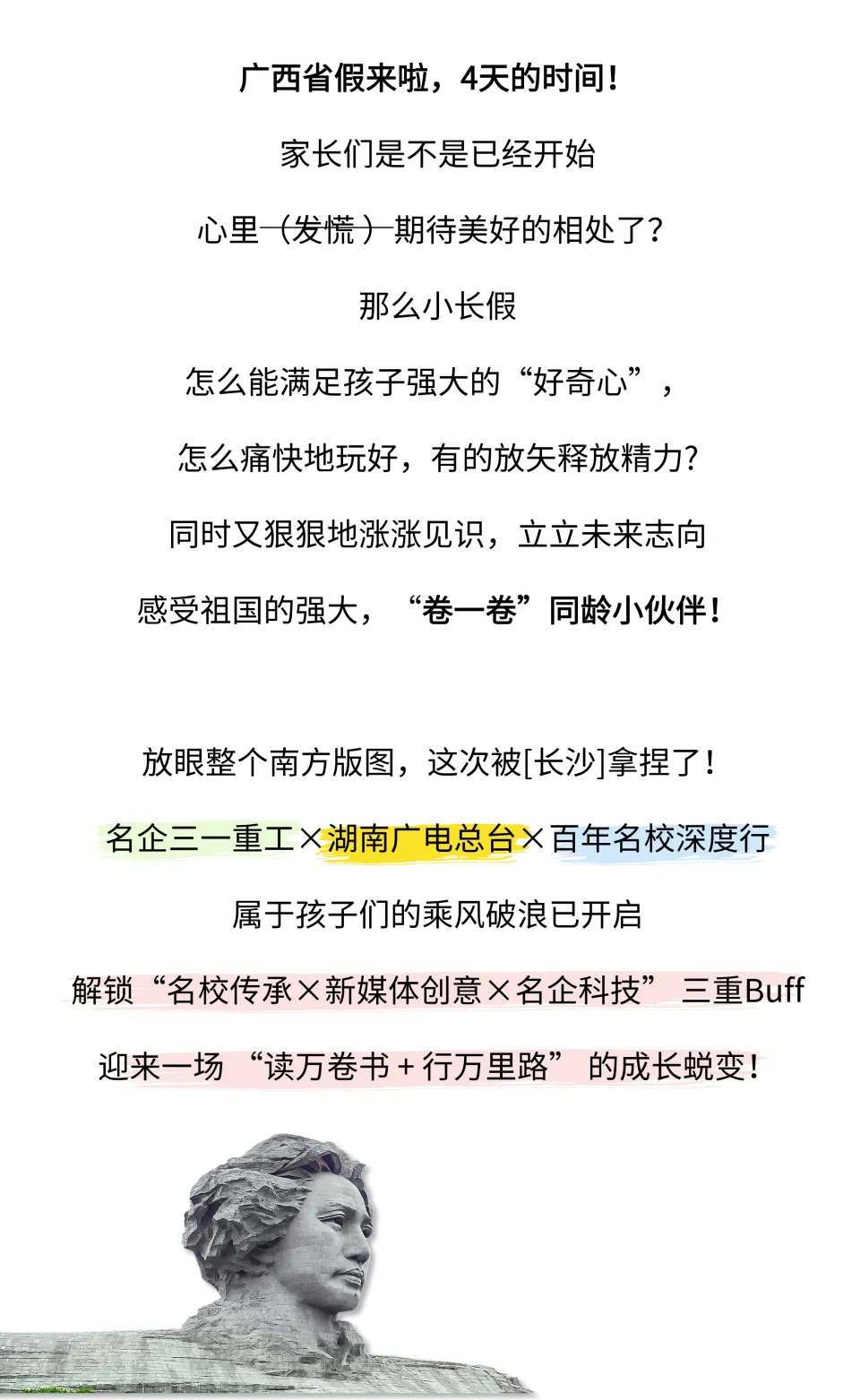 橘子洲头朗诵《沁园春·长沙》,激发孩子们的爱国情怀,来一次橘子洲头的励志精神洗礼。