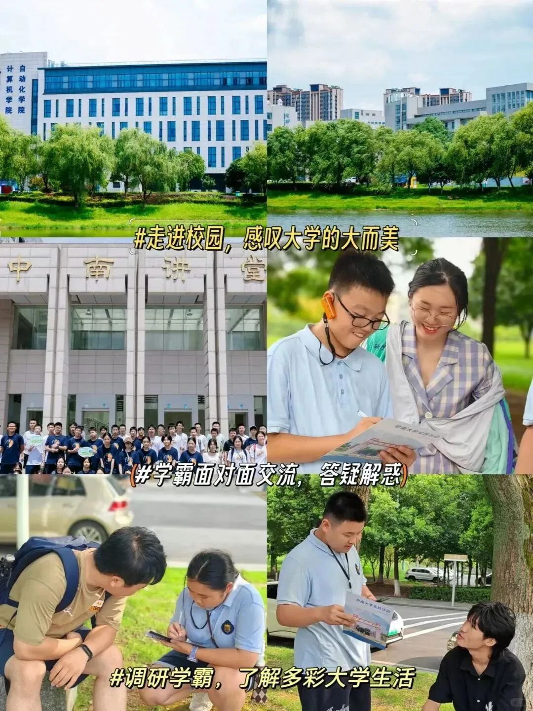 (1)生涯环游·中南校园参访:跟随高校学霸研究生,了解中南大学各个学院的概况、专业内容、就业方向等,对何为大学有一个初步的认知。