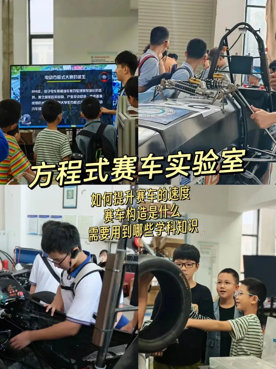 (4)参访机电工程学院赛车实验室: 了解赛车构造,还能体验模型制作,让孩子在动手实践中感受科技的魅力!