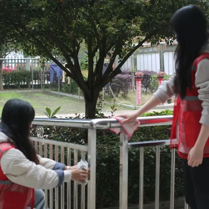 大家手持扫帚、抹布等工具,仔细清扫庭院、擦拭公共设施,不放过任何一处卫生死角。阳光之下,整洁的院落与同学们忙碌的身影,构成了一幅动人的劳动画卷,用双手拂去岁月的尘埃,为老人们擦亮一方晴空。
