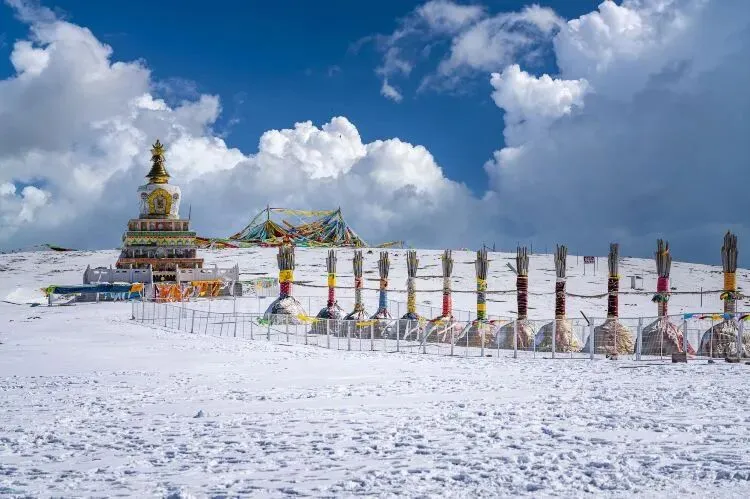 - 15:00-15:30 大冬树山垭口打卡,经幡阵、雪山全景拍照,打卡4120米云端地标;
