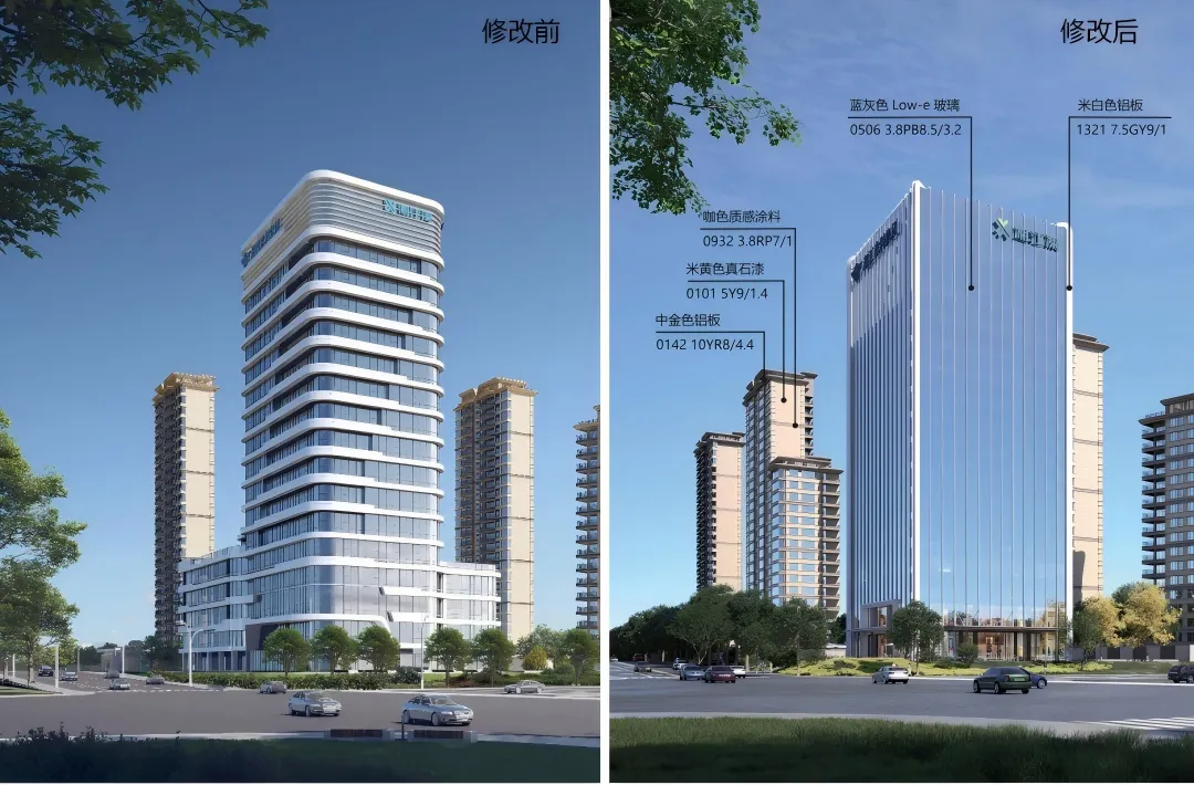 调整内容主要有两点:1、将地块内1栋16F总部综合楼(5F裙房)修改为1栋住宅(2+23F/2+14F)和1栋总部综合楼(13F);2、调整后新增住宅面积9836㎡,商住比为60:40,新增居住户数60户。