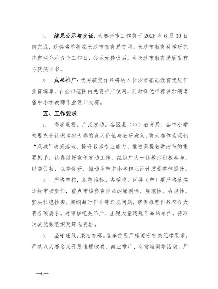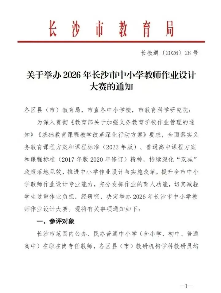 >【教师比赛】关于举办2026年长沙市中小学教师作业设计大赛的通知