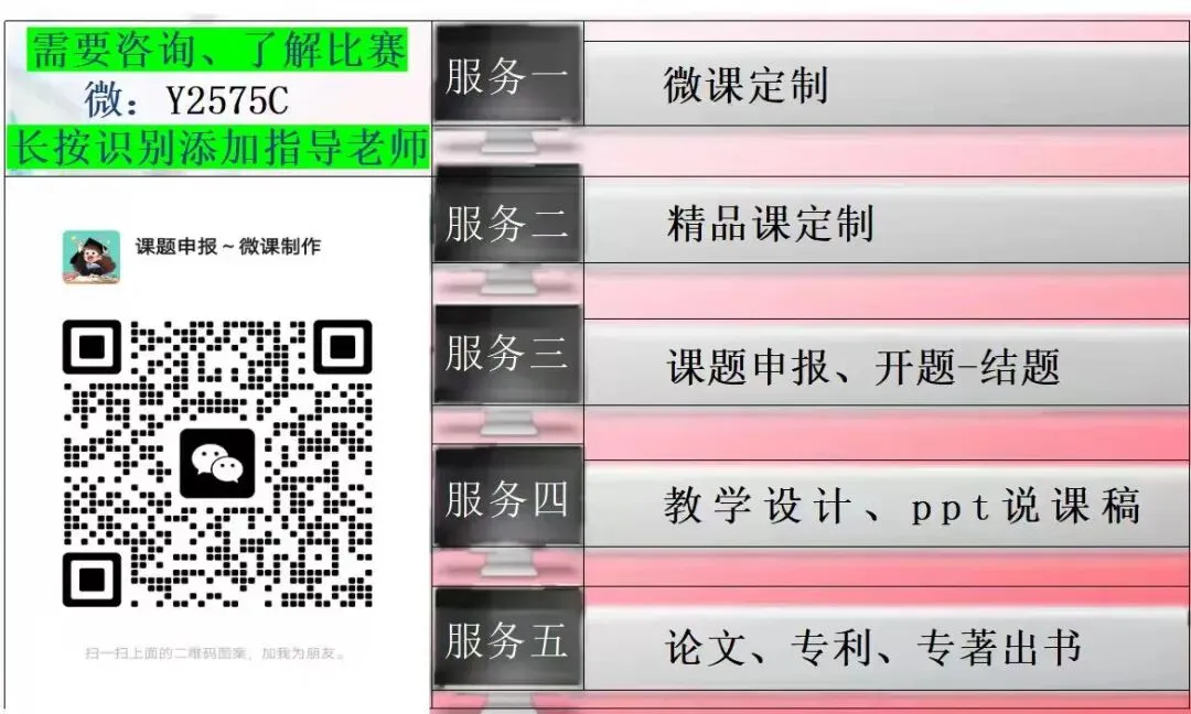 需要的老师,可以👆微信联系,可提供课件、教学设计、论文、课题、征文、精品课、公开课等原创设计,需要参加的老师,欢迎咨询