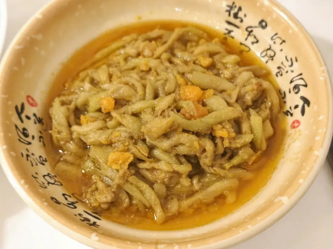 茄子切成细长条,软糯,每一根都裹满了沙沙的咸蛋黄。