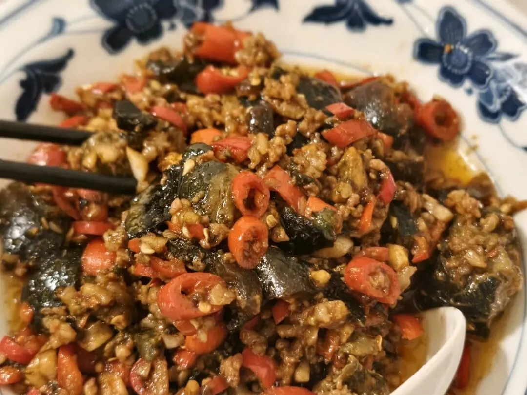 一口咬下去,咸蛋黄在嘴里化开,那种“沙沙”的触感配上茄子的软滑,层次感拉满。