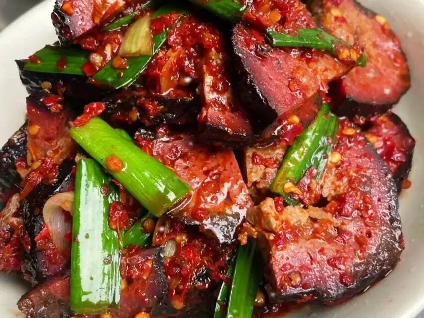 外层微焦,内里软糯,咸香带辣——这才是猪血丸子应有的样子。