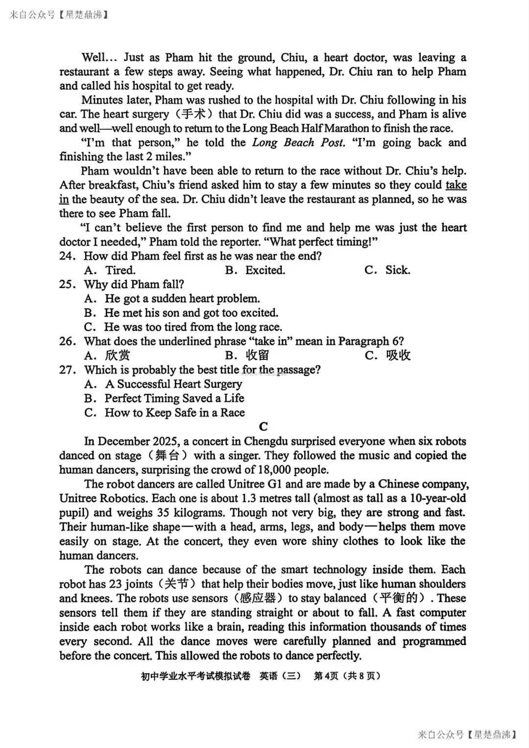 湖南省长沙市教科院2025-2026学年九年级下册模拟考试英语试卷(含答案)PDF科下载打印