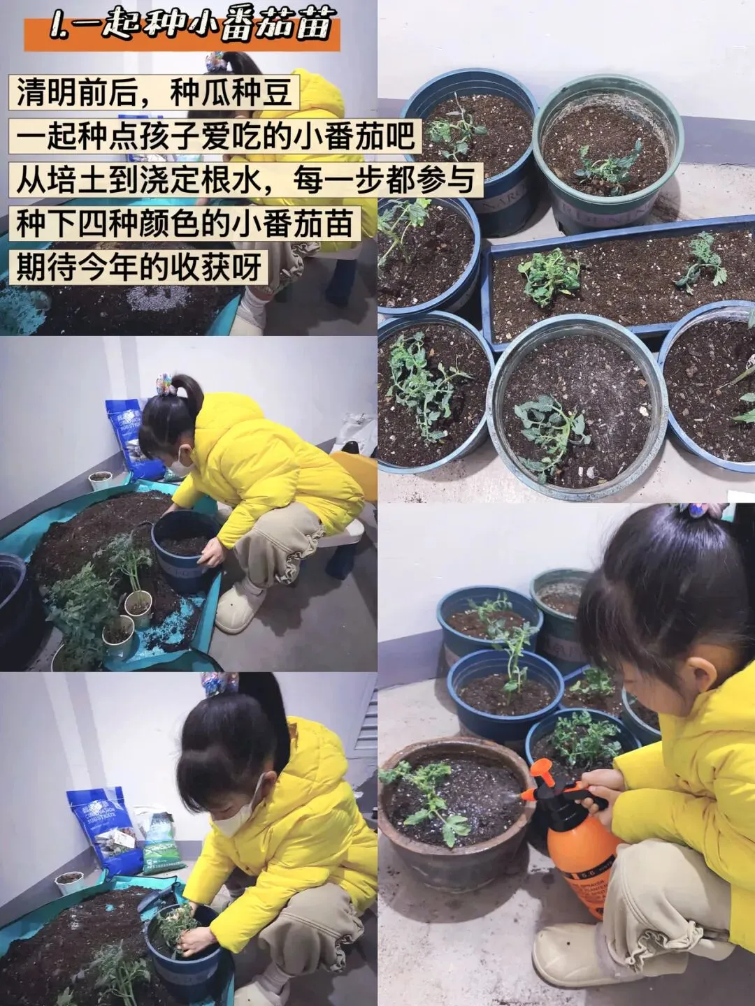 临近清明,一起亲手种植小番茄苗。熟悉了种植的基本步骤——培土、定植、压实、浇水。孩子感觉有点累,但这就是我的目的。