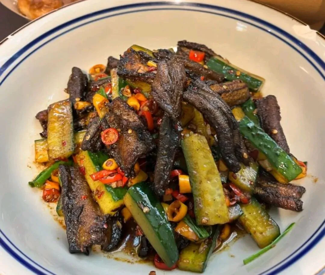 这道菜太惊艳!鳝鱼先炸得外香里嫩,完全没腥味,搭配清爽黄瓜条和提香紫苏,鲜香辣交织,地道湘菜味直接拉满,一口下去超满足。