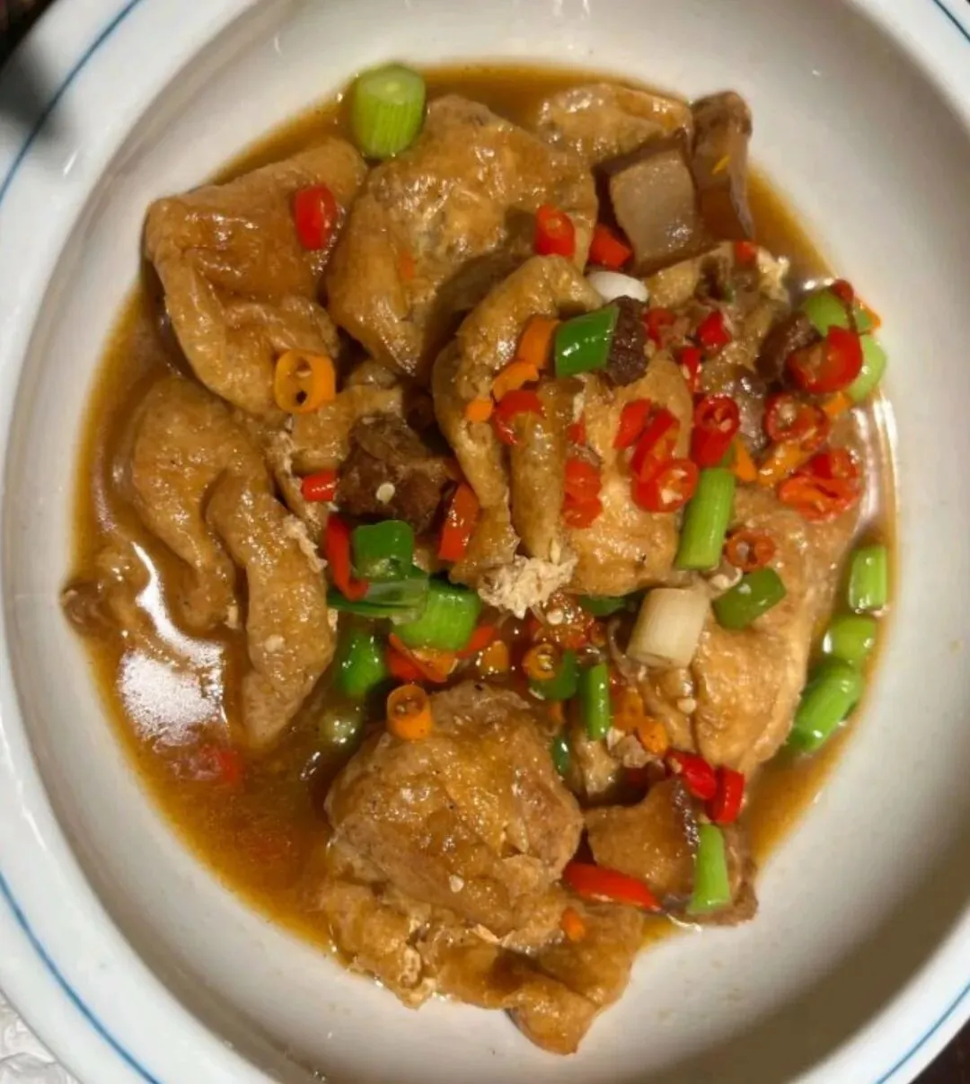 衡阳家常菜经典款!油豆腐吸饱了红烧肉的浓郁汤汁,咬下去直接爆汁,豆香醇厚又软嫩,咸香入味,素菜吃出肉感,妥妥的下饭神器。