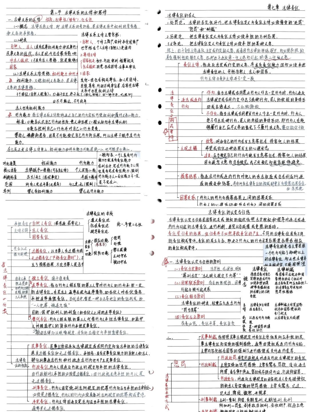 二等奖胡珂嘉《法理学》、莫晴晴《行政法与行政诉讼法》:图文结合,体系完整。书写规范,实用高效。