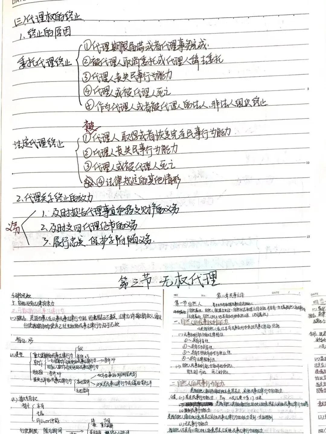 三等奖朱思宇《民法总论》、张韦淇《国际公法》:排版整齐,详略得当。图解直观,便于理解。