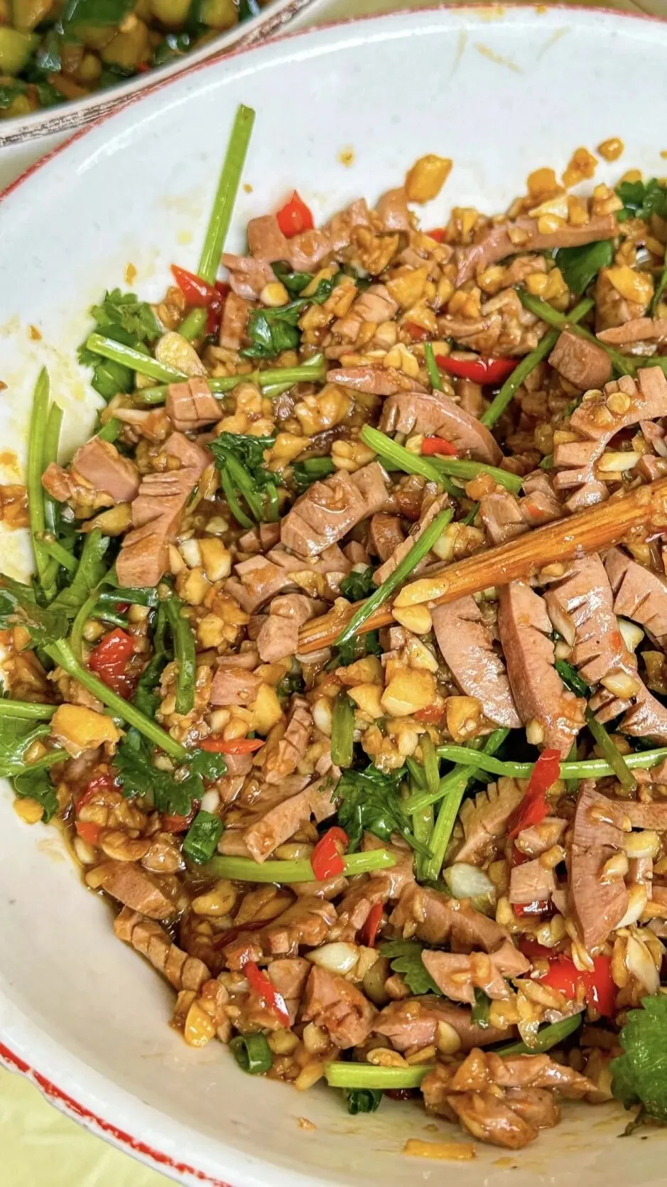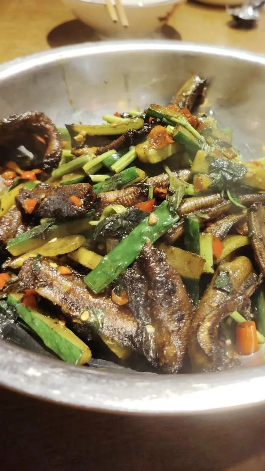 笔杆鳝现杀去骨,干净无土腥味。黄瓜去瓤打底,吸满汤汁,加韭菜叶提香,大火快炒后干爽不油。鳝段外酥里嫩,软而有弹性,鲜辣中带清甜,配米饭干两碗都不够 。