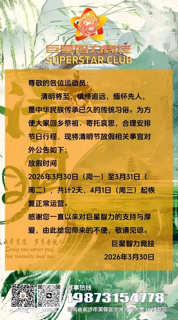3月30日周一 | 长沙各俱乐部智力竞技赛事速递!最全最准