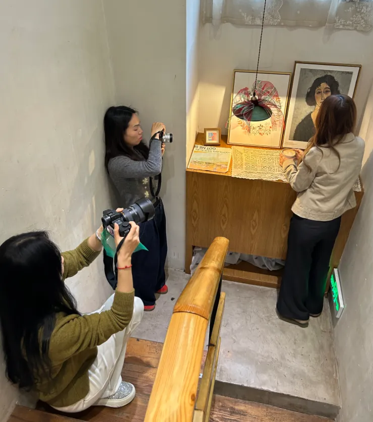 长沙的雨,缠绵了有些时日了,便又将人像的拍摄,安放在屋子里头。去的是《三居时光咖啡馆》,我多年前便来过的了。它静静地待在那儿——友谊路153号,电视机厂北院的14栋。屋子分作上下两层,楼下的地方是敞亮的,容得下三五个好友围坐着,说些闲话,又因着那巧妙的间隔,客人们各自守着一隅,倒也互不相扰,颇有几分在家里自在、熨帖的味道。
