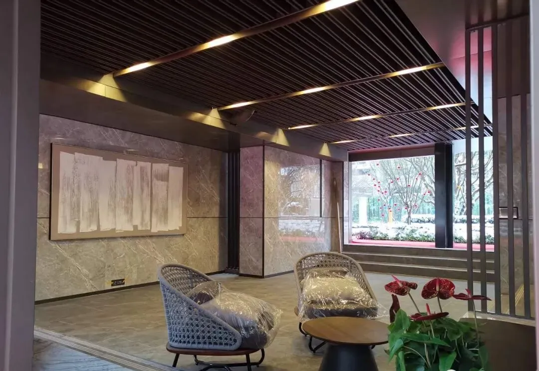 小区2022年交付,绿化率35%,景观层次丰富,品质也不错,地下车库采用入户泛大堂设计,大理石墙面干挂,满满奢华现代感。