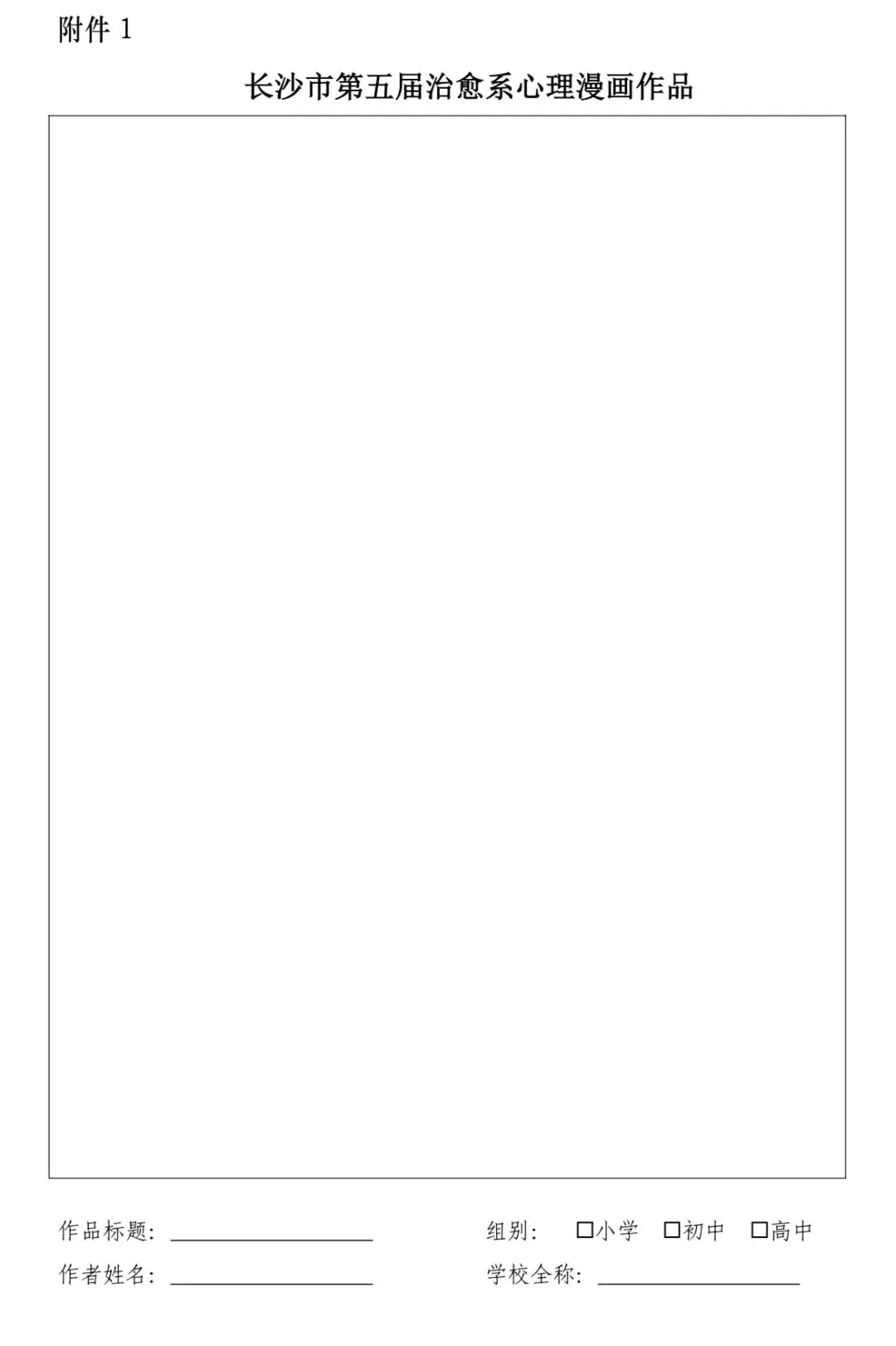 (二)使用规定画纸(附件中任意一张模板,A4 纸打印),创作格数不限,黑白、彩色均可,拒收铅笔稿。不符合要求视为放弃复赛资格。