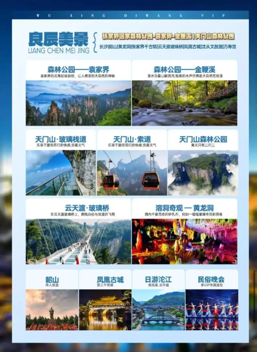 4月【小贵族A】六日~长沙/张家界森林公园/天子山(索道)/袁家界/百龙电梯/十里画廊/金鞭溪 天门山/魅力湘西/芙蓉镇