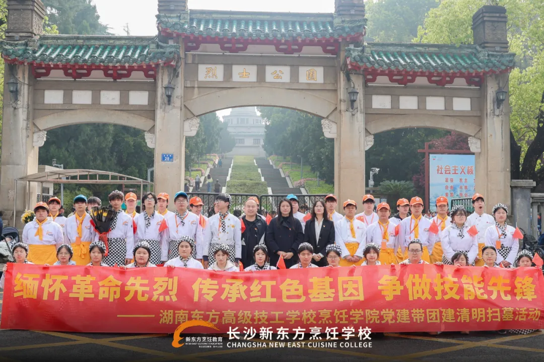此次活动不仅是一次深刻的爱国主义教育,更是一堂生动的思政实践课。长沙新东方烹饪学校始终坚持党建引领育人方向,将红色教育融入人才培养全过程,通过祭扫英烈、主题党课、红色研学等多种形式,引导广大青年学子传承红色基因、赓续精神血脉。作为职业教育院校,学校始终牢记为党育人、为国育才的使命,在传授精湛烹饪技艺的同时,注重培养学生的家国情怀、责任担当与工匠精神,致力于培养德技并修的高素质技能人才。