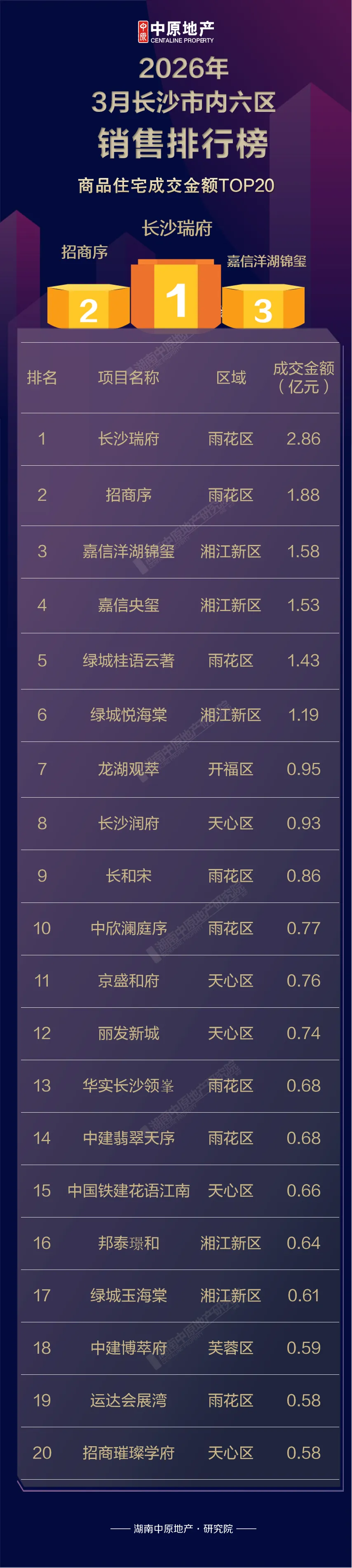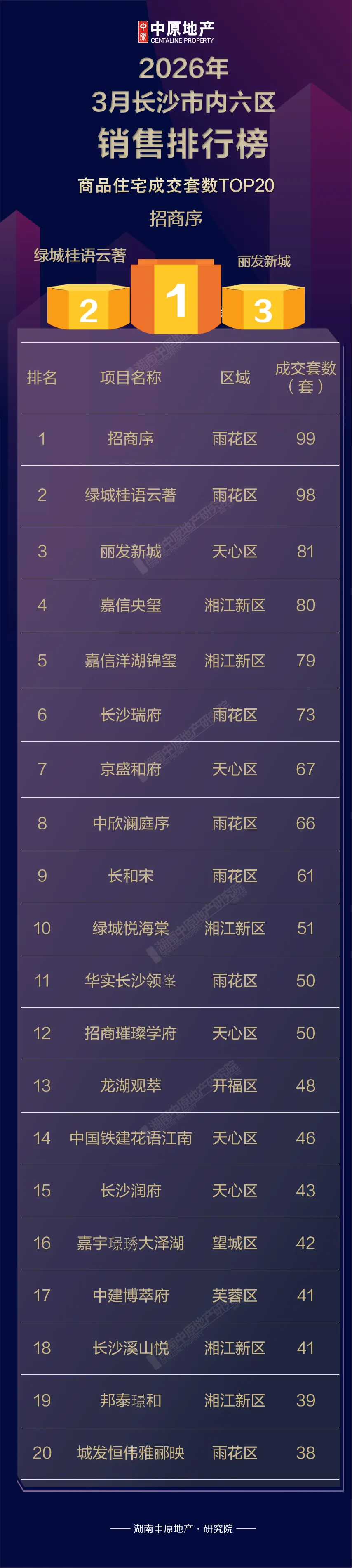 项目排行中如成交套数一致,则按成交金额排序,请知悉,其中雨花区包含其代管的自贸会展板块项目