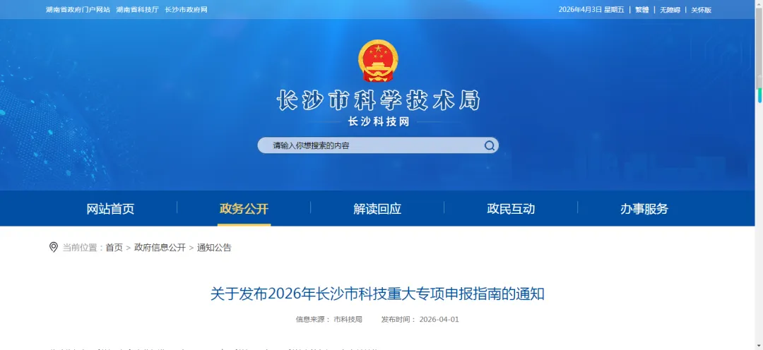 为进一步推进关键技术攻关和科技成果转化,提升长沙自主创新能力,根据长沙市科技重大专项相关管理规定,现发布2026年长沙市科技重大专项申报指南。