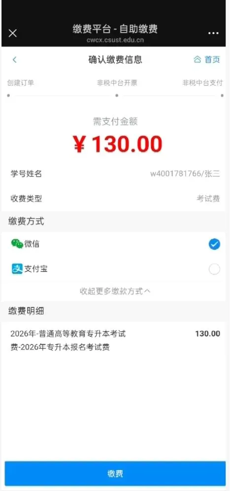 附件:长沙理工大学“专升本”报名缴费流程
