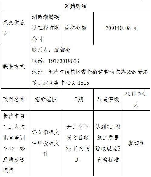 采购单位:长沙市第二工人文化宫