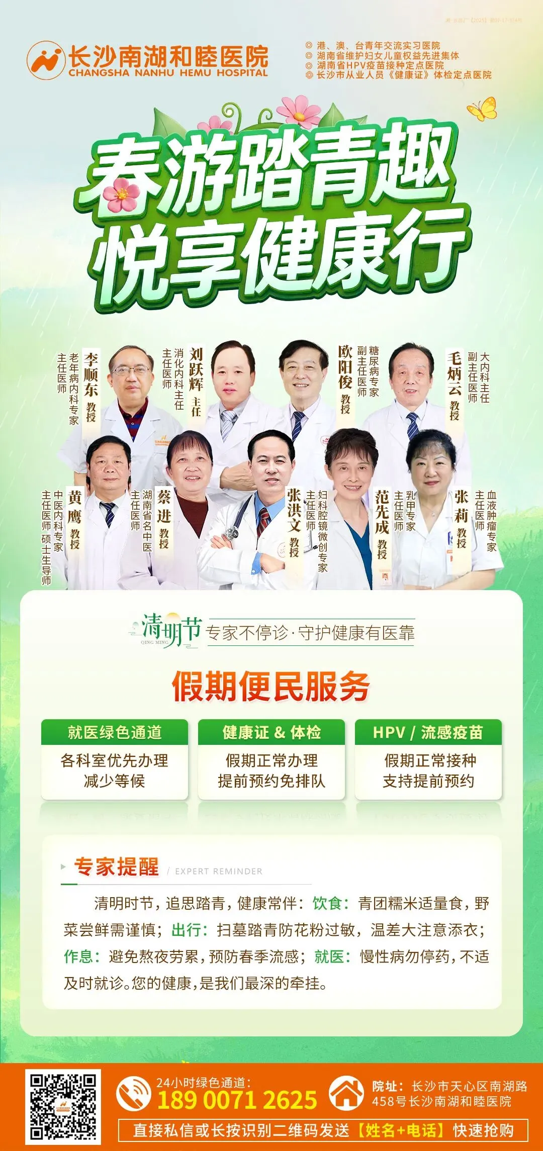 【您休假 我值班】长沙南湖和睦医院清明假期各科专家轮班亲诊,全力守护市民健康