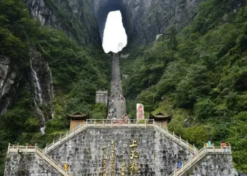 前往 【张家界国家森林公园】(含景区环保车) , 张家界国家森林公园面积 130 平方公里 , 是中国第一个国家森林公园 。 其处于峰林演化史的青年期 , 地貌奇特 , 石峰林立 , 形态各异 , 树木茂盛 ; 四周山地环抱, 坡陡沟深 , 气候暖湿 , 景点众多。首先后前往世界自然遗产的核心 【袁家界】 (游览时间约1 . 5小时 , 含百龙天梯单程) , 后乘 【百龙天梯】 索道站乘全暴露观光缆车 · 最高户外电梯 · 体验66秒直达山顶、 挑战你的心速! 一览春日风光! 袁家界位于杉刀沟北麓 , 是以石英岩为主构成的 一座巨大而较平缓的山岳 , 既有石丛小洞 、 银瀑高泻 , 又有竹林繁茂、 苍松垂壁。 水丰林密 , 空气极为清新 , 是张家界公园一处风景集中地 , 主要游览: 天下第一桥、 迷魂台 、 哈利路亚山 (电影《阿凡达》 中 "悬浮山 " 的取景山) 后花园等。