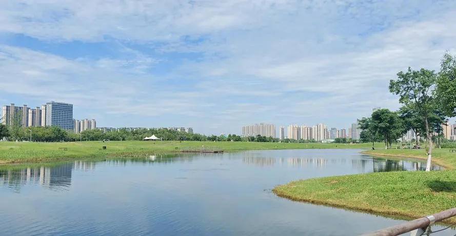 这种设计思路其实很少见,因为大部分公园都在强调功能,跑道要够长、设施要够全、景点要够密集,恨不得让你每分钟都有事干,但洋湖湿地反着来,它给你留白,大片的草地、大片的水面、大片的天空,什么都不逼你做,你想野餐就野餐,想放风筝就放风筝,想躺着就躺着,它不管。