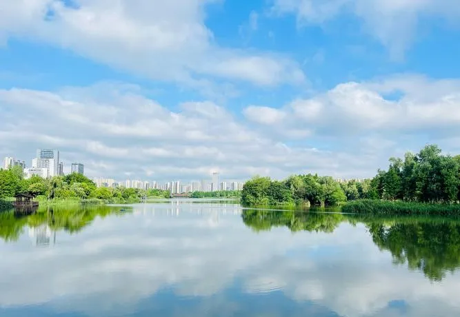 洋湖湿地公园就是这种自洽的产物。这个公园在长沙城西,离市中心不远不近,被本地人称作"长沙人的小江南",不是因为它有多像江南,而是因为它把江南那种"水边散步、树下发呆、不赶时间"的松弛感给复刻了,但复刻得不生硬,你走在里面不会觉得是在模仿什么,就觉得这本来就该是长沙的一部分。