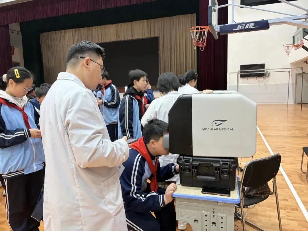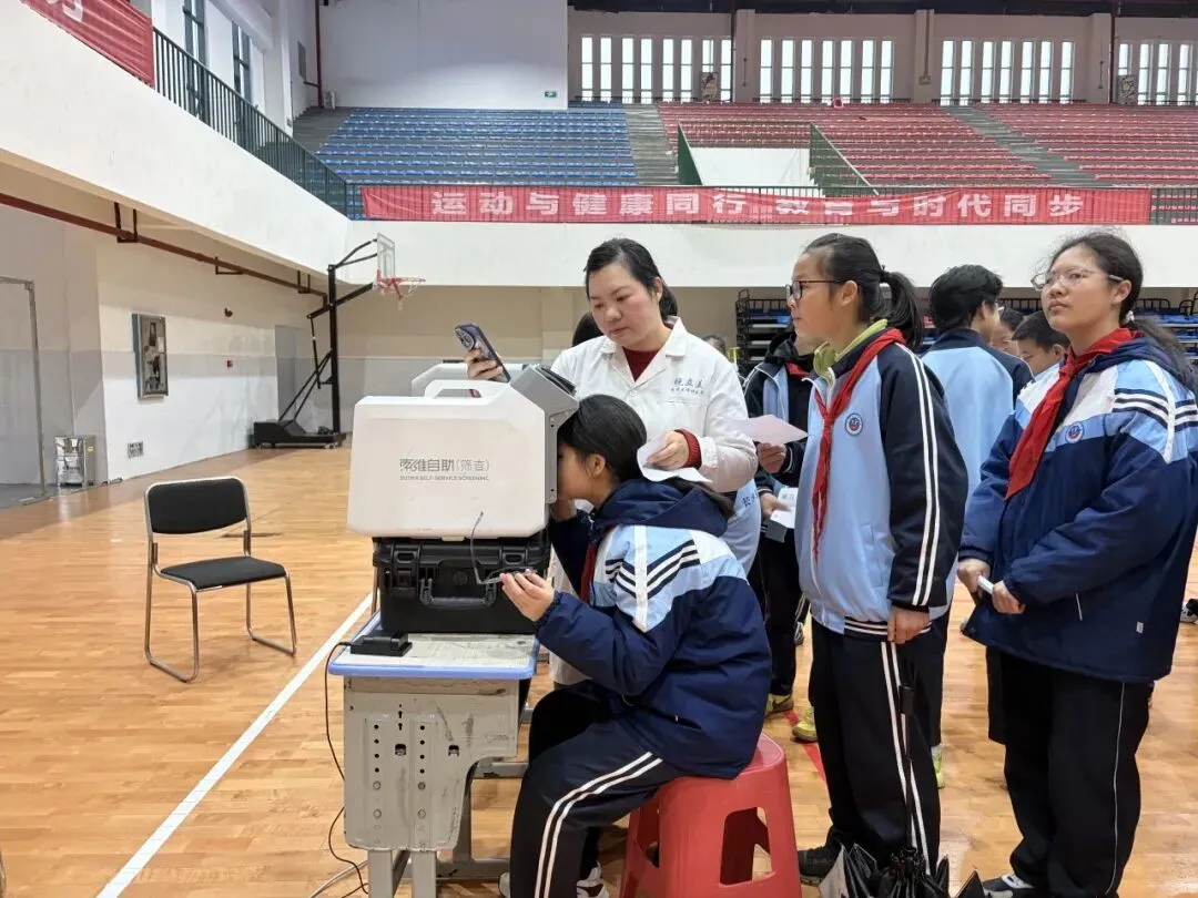 本周五上午,学校组织各年级开展视力筛查工作,切实守护学生视力健康。筛查现场秩序井然,各班学生在班主任带领下,以班级为单位有序排队检测,全程配合默契。检测人员依照标准流程,为每位同学精准检测视力、记录数据。此次筛查及时掌握了全校学生的视力状况,为完善视力健康档案提供依据,也进一步增强了同学们的爱眼护眼意识。