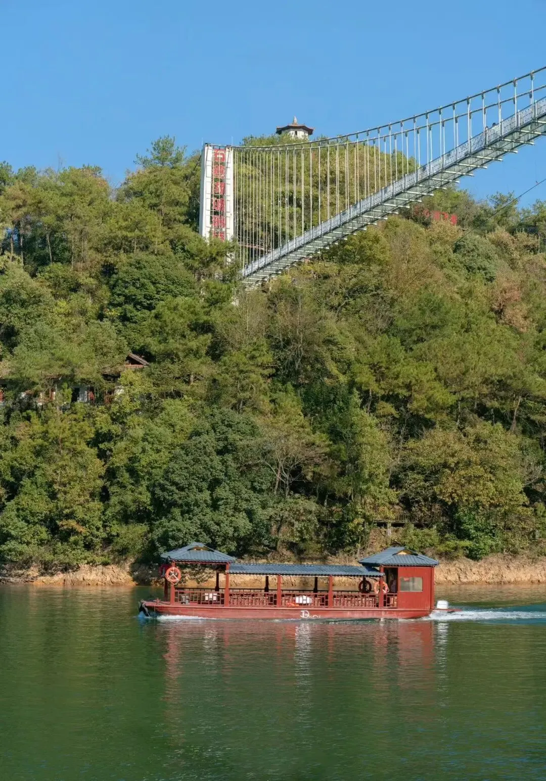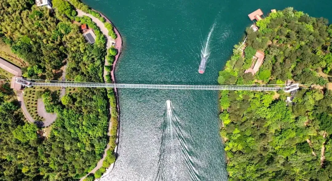 北门入园检票➡️乘坐游船游湖➡️玻璃桥➡️关云桥➡️空中栈道➡️藤桥➡️天空之镜➡️天街➡️沙滩亲子乐园➡️游览车站点➡️粉红沙滩➡️游乐场➡️丛林穿越➡️愉快返程