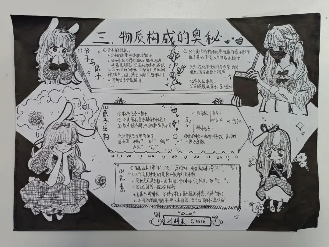 这些作品在条理清晰,构建完整知识体系的同时;趣味拉满,让化学知识活起来。谁说化学只能是枯燥的公式和概念?孩子们用创意,给知识点穿上了可爱的“外衣”。