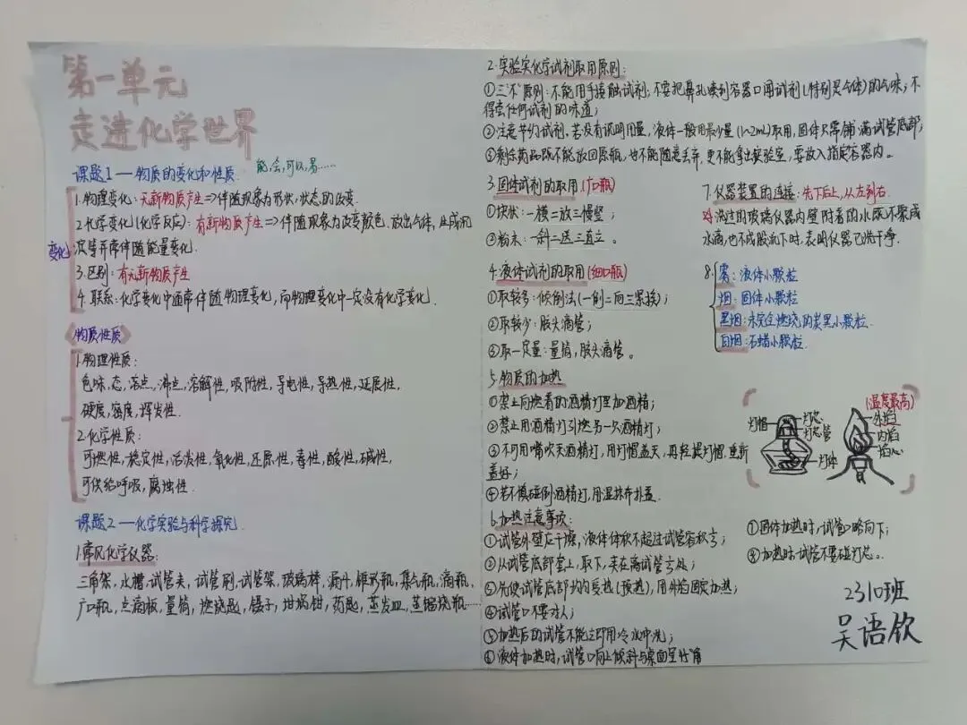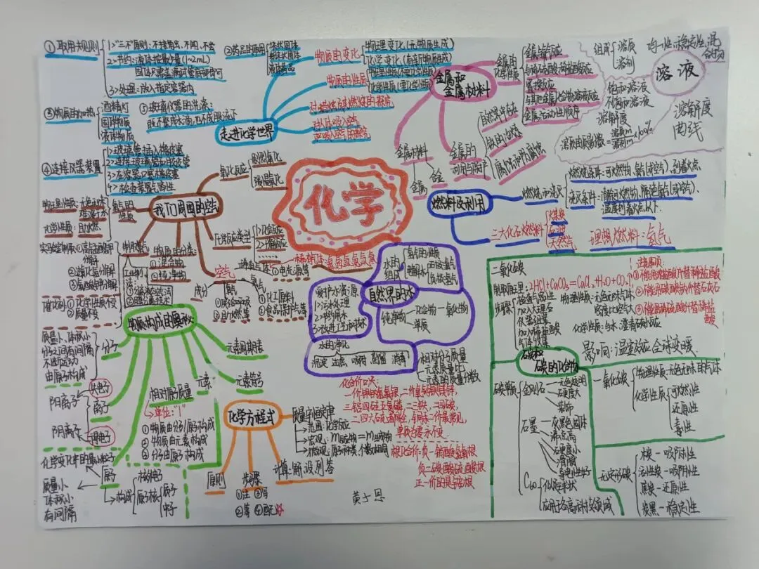 这类作品有的童趣满满,不仅让枯燥的知识点变得生动好记,更让我们看到了孩子们眼里化学独有的浪漫与趣味;有的堪称"知识架构天花板",以单元主题为核心,将知识点梳理得严丝合缝。