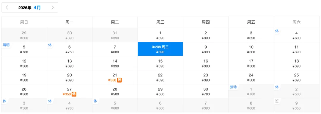 ✈️去程低价350元