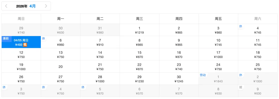✈️去程低价493元