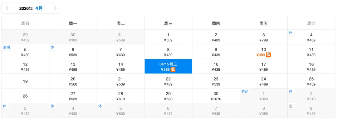 ✈️去程低价389元